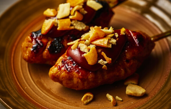 香ばしく焼き上げたつくねに、コチュジャンの旨辛だれを合わせた一品。