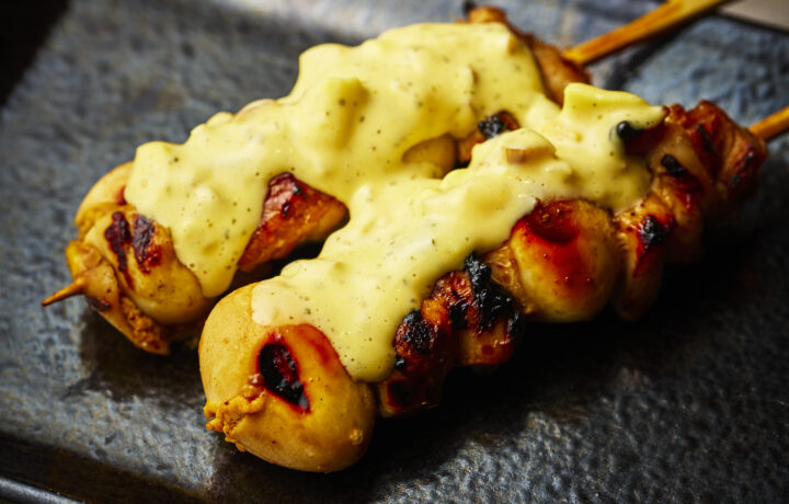もも肉とうずらを贅沢に串打ちし、燻りがっこ香る特製タルタルをたっぷり添えました。